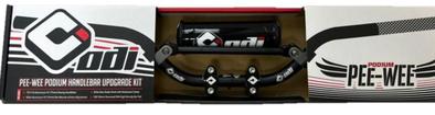 Aftermarket Minis Handlebar Kit is a complete bolt on kit that comes complete with aluminum handlebar, cnc'd rear brake perch with all 4mm head size stainless steel hardware, cnc'd billet handlebar mount with 8mm head size stainless steel hardware. We didn't cut any corners when making or designing this kit. Stock throttle and cables work with both handlebar kit options.